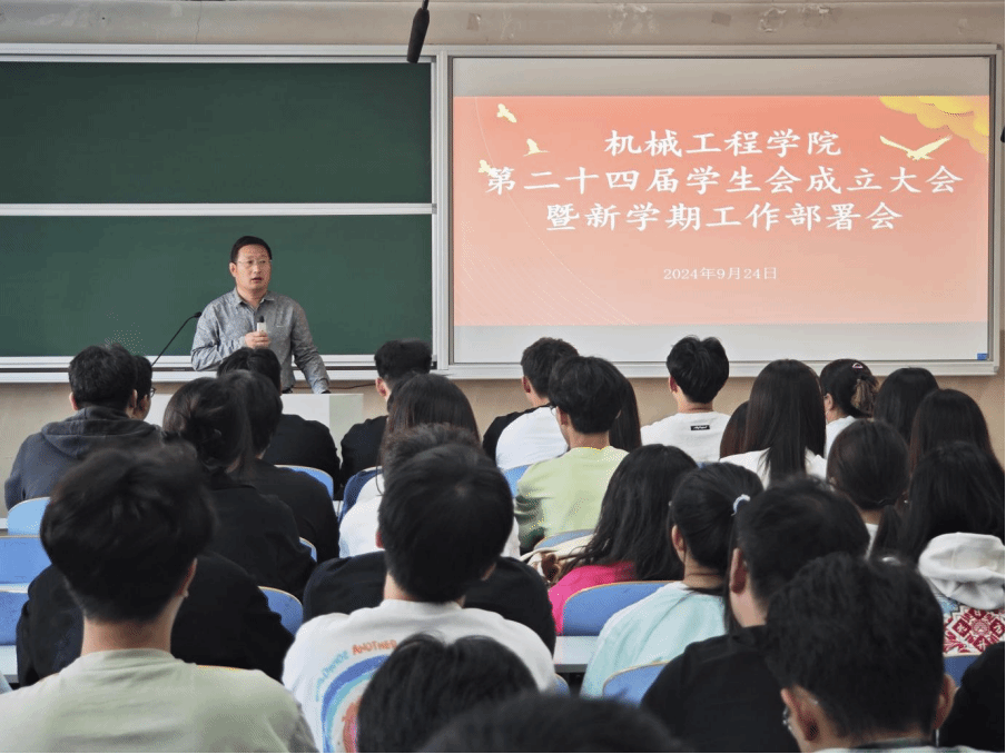 学院党委副书记孙成政在致辞中对新一届学生会的成立表示热烈祝贺。他要求,学生会干部一要明确职责定位,工作标准要高,从学生中来、到学生中去,充分发挥学生干部的模范带头作用;二要强化规范建设,工作作风要实,完善制度建设,在服务学生中提升自己,充分发挥学生干部的桥梁和纽带作用;三要对标先进勇于创新,工作效果要好,在“干中学”,在“学中干”,在服务学生中提升自己,充分发挥学生干部的先锋骨干作用。孙成政提出,希望新一届学生会成员能够传承和发扬学院的优良传统,以饱满的热情和高度的责任感,不断提高工作水平,为同学们做好服务,全方位提升自身综合素质,为学院的发展贡献自己的青春力量。