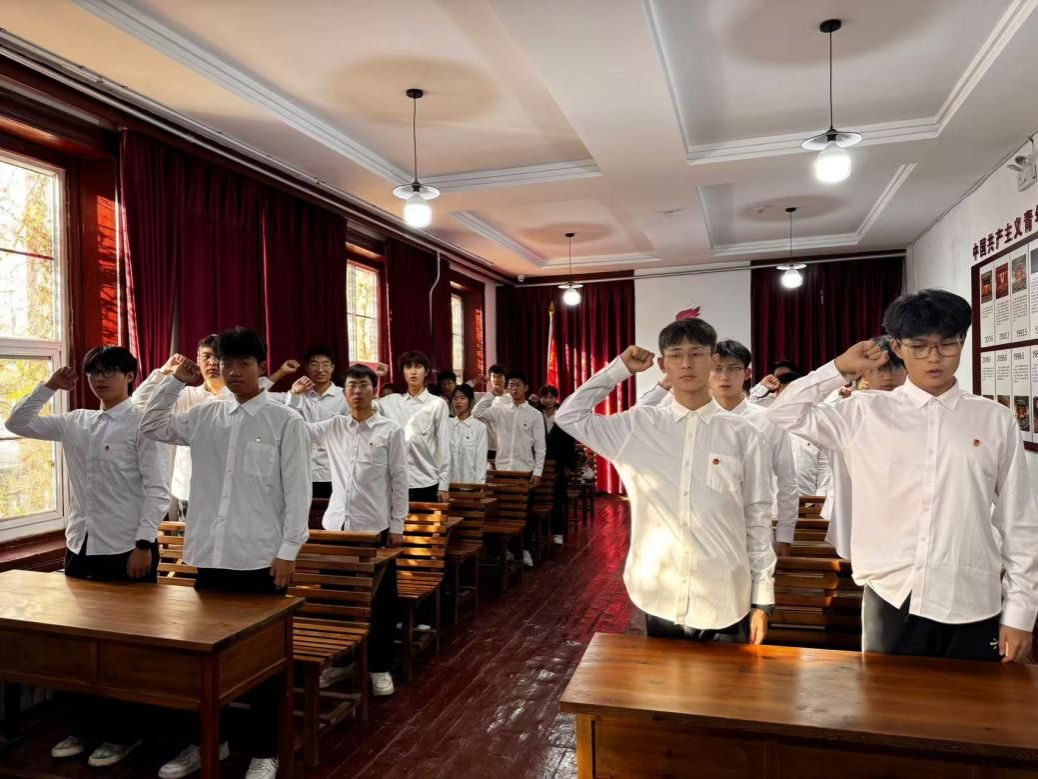 活动最后,新老团员们在团旗下重温入团誓词,彰显着新一代青年对共青团的忠诚与担当。